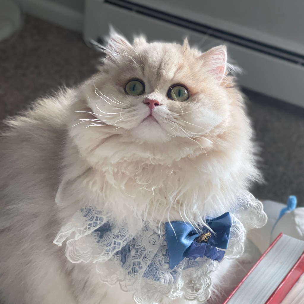 Show-quality British Longhair with a sweet doll face. He has a perfectly shaped head paired with bright green eyes. Such a beautiful face is rare among adult male cats.